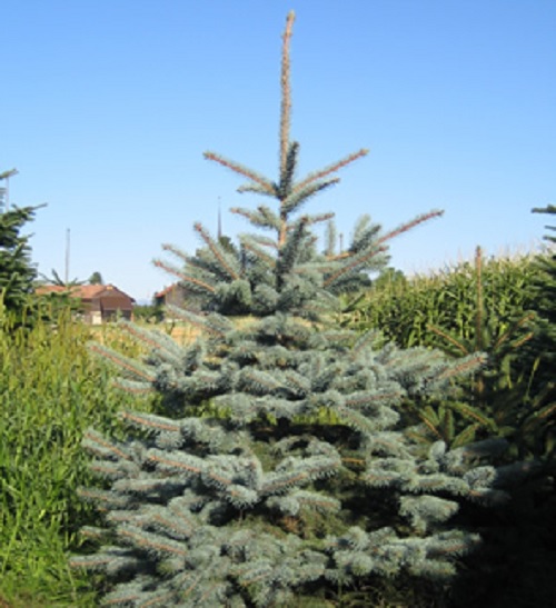 Sie zeichnet sich durch bläuliche, spitze Nadeln aus.